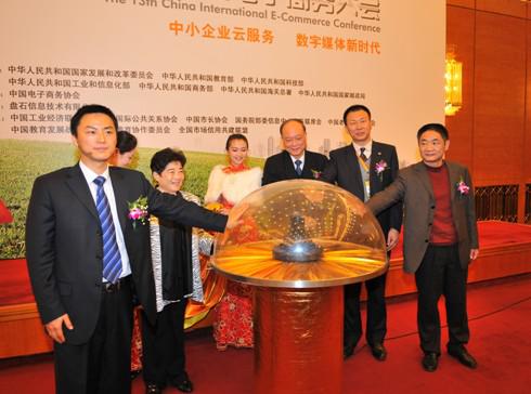 第二屆中國(guó)電子商務(wù)行業(yè)門(mén)戶(hù)大會(huì)開(kāi)幕儀式上, 全國(guó)工商聯(lián)副秘書(shū)長(zhǎng)王忠明等領(lǐng)導(dǎo)啟動(dòng)開(kāi)幕式