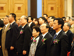 工信部、商務(wù)部等12部委的領(lǐng)導(dǎo)和嘉賓 在開(kāi)幕式上齊唱國(guó)歌