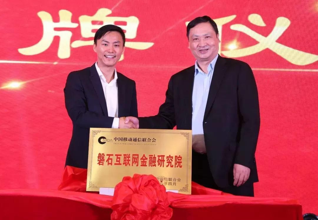 由中國(guó)移動(dòng)通信聯(lián)合會(huì)執(zhí)行會(huì)長(zhǎng)倪健中授權(quán)北京盤(pán)石信用管理有限公司成立中國(guó)移動(dòng)通信聯(lián)合會(huì)磐石互聯(lián)網(wǎng)金融研究院并為其揭牌